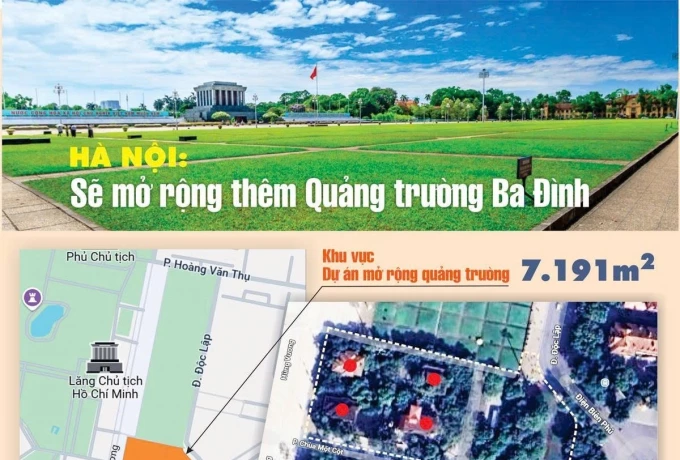 Vừa qua, Thủ tướng Chính phủ đã có Quyết định số 1086 phê duyệt nội dung quy hoạch chi tiết Dự án mở rộng Quảng trường Ba Đình. Theo quy hoạch, khu đất để mở rộng quảng trường ở vị trí: Phía Bắc giáp khu vực các ô cỏ Quảng trường Ba Đình, phía Nam giáp phố Chùa Một Cột, phía Đông giáp đường Độc Lập, phía Tây giáp đường Hùng Vương.