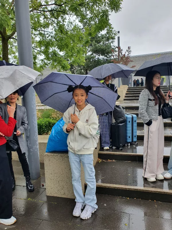Mưa lạnh mà con vẫn cười - Các bậc phụ huynh với valy trang phục trong mưa