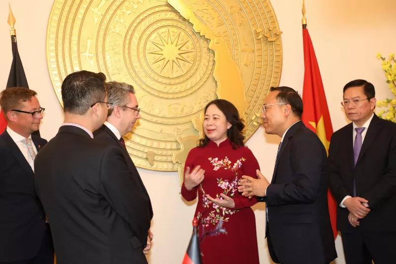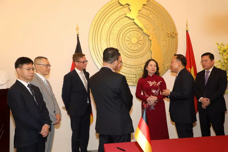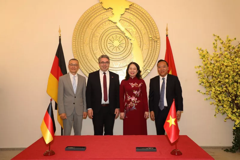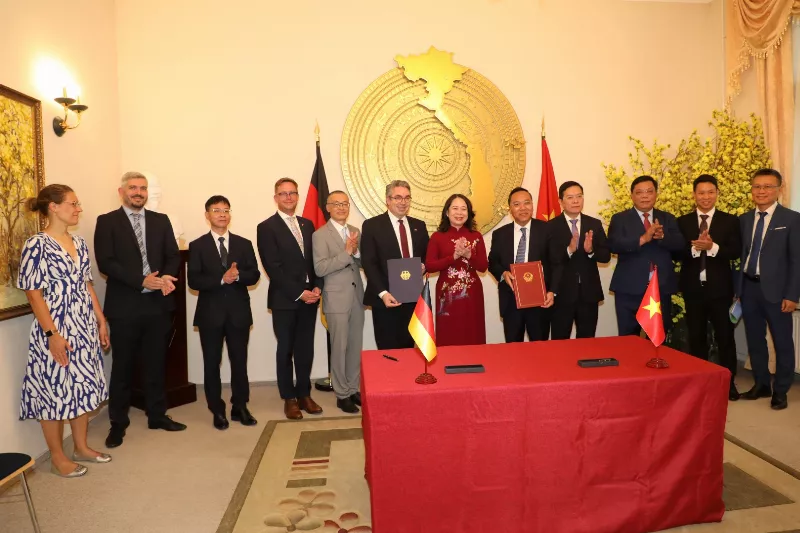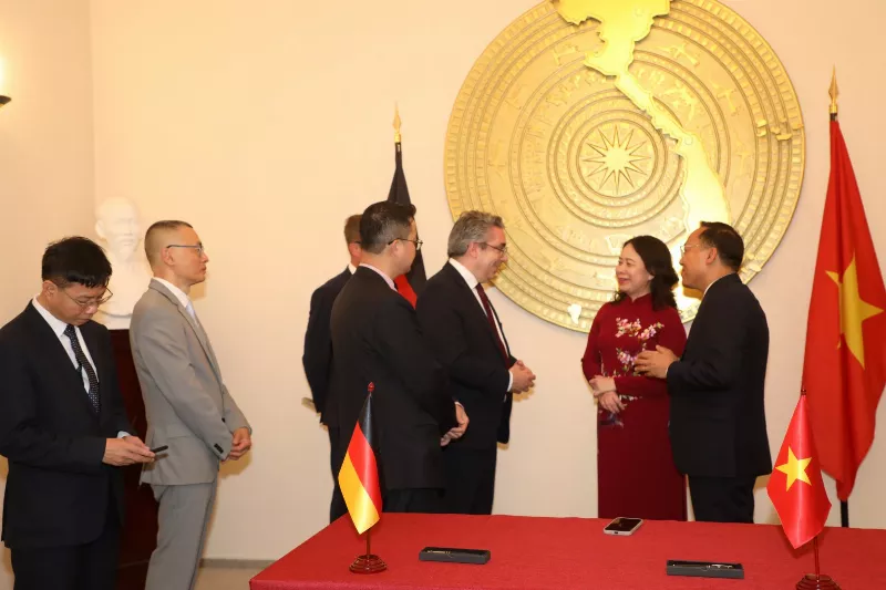 Ngày 03/07/2025, tại Đại sứ quán Việt Nam ở Berlin, Phó Chủ tịch nước Võ Thị Ánh Xuân cùng đại sứ Vũ Quang Minh và các cán bộ cấp cao đã chứng kiến Lễ ký Tuyên bố chung về lợi ích để thành lập Quan hệ đối tác năng lượng Đức-Việt chính thức.