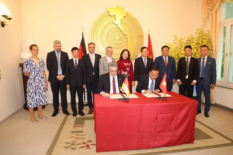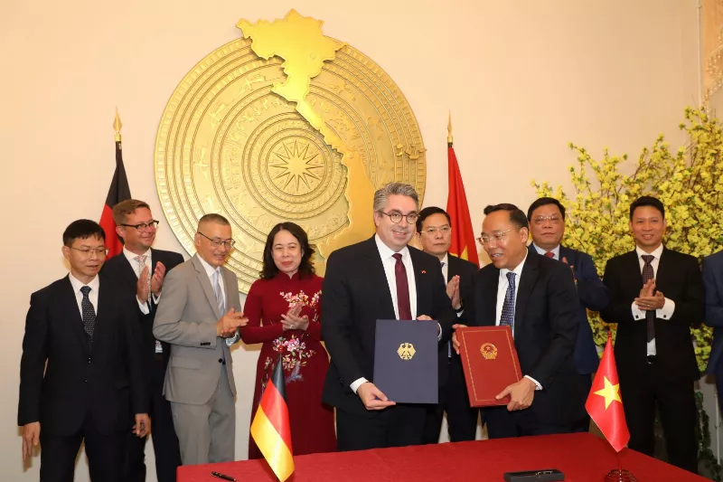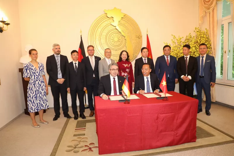 Thứ trưởng Bộ Công Thương Nguyễn Hoàng Long và Ông Stefan Rouenhoff, Quốc vụ khanh Bộ Kinh tế và Năng lượng Liên bang của CHLB Đức đã ký văn kiện quan trọng này.