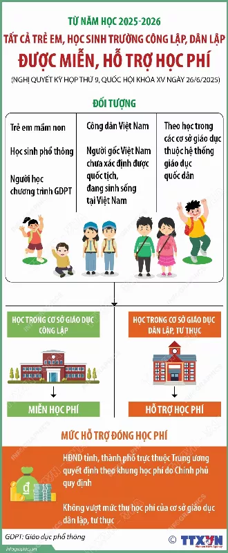 Từ năm học 2025-2026: Tất cả học sinh trường công lập, dân lập được miễn, hỗ trợ học phí